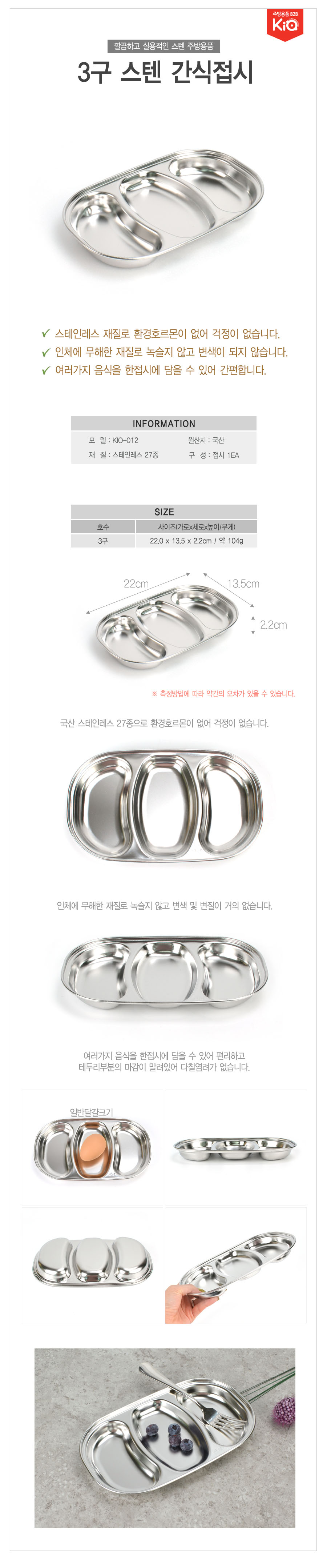 위생적인 스텐 3구 분할 나눔 접시 3구스텐간식접시