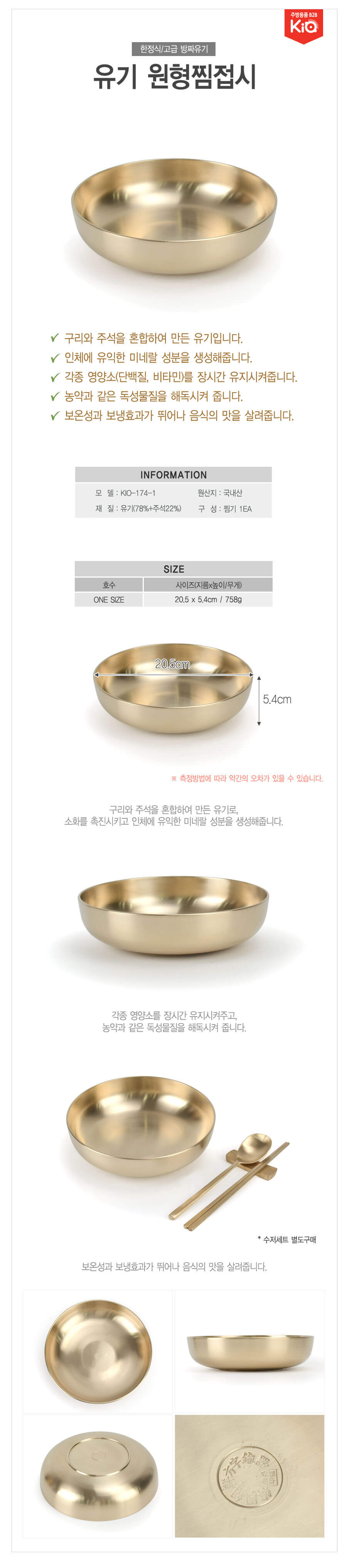 보온보냉 고급 방짜 유기 원형 반찬 접시 유기원형찜접시