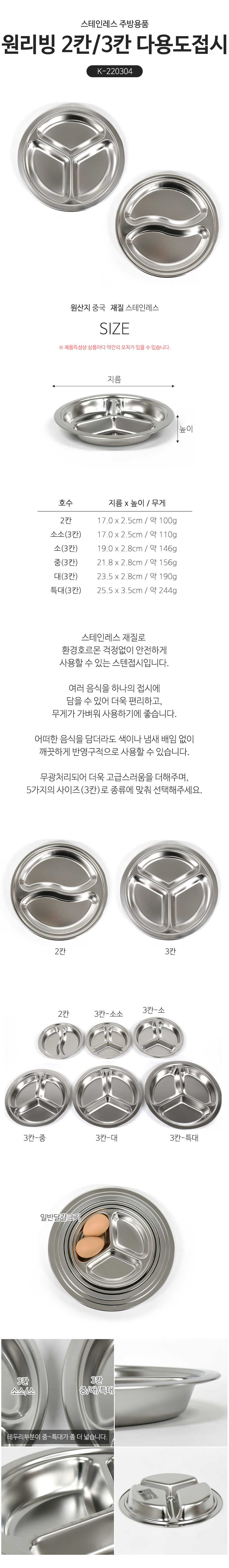 어린이집 유치원 유아 스텐 분할 원형 간식접시 3칸 소