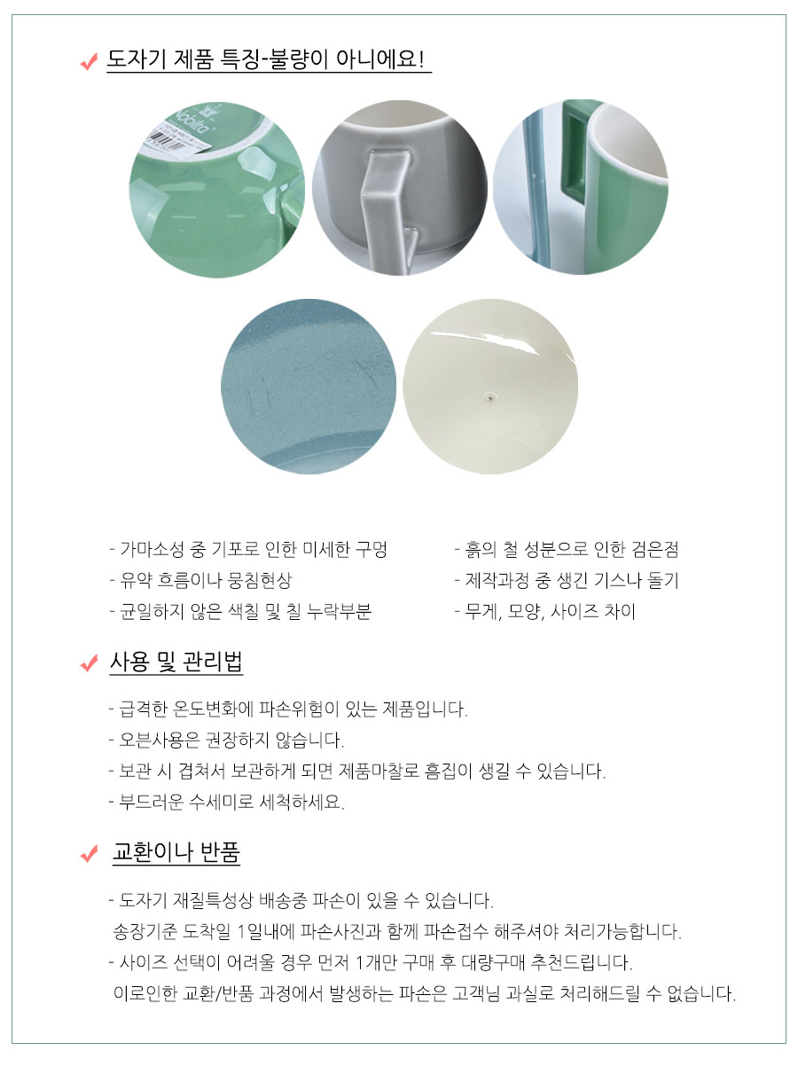※ 오배송, 불량, 파손 이외의 사유 및 색상 차이에 의한 반품/교환은 변심에 해당됩니다.
