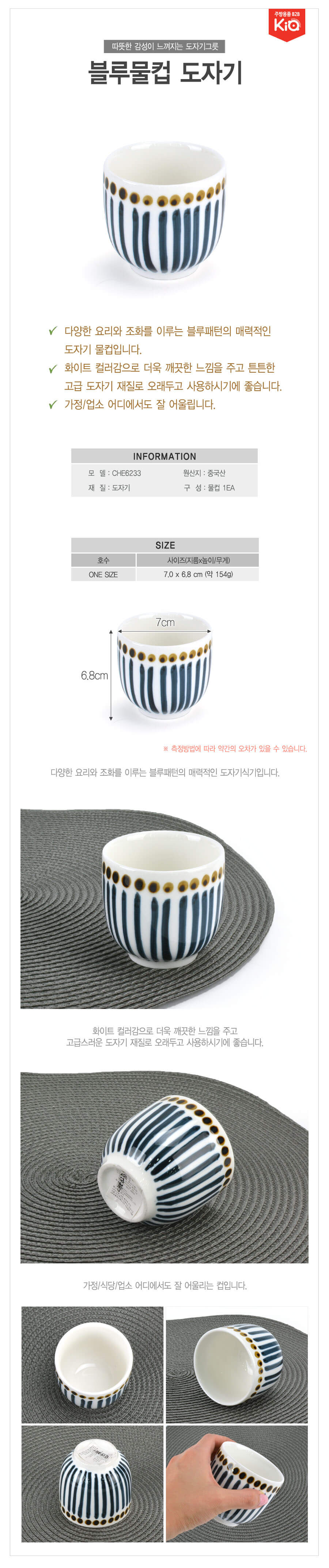 업소용 블루 패턴 감성 도자기 물컵 블루물컵