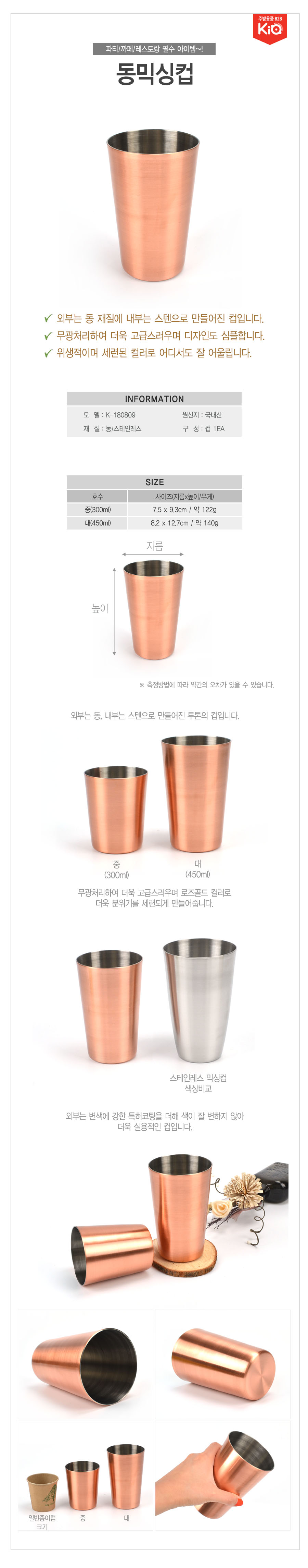 위생적인 업소용 황동 스텐 물컵 대