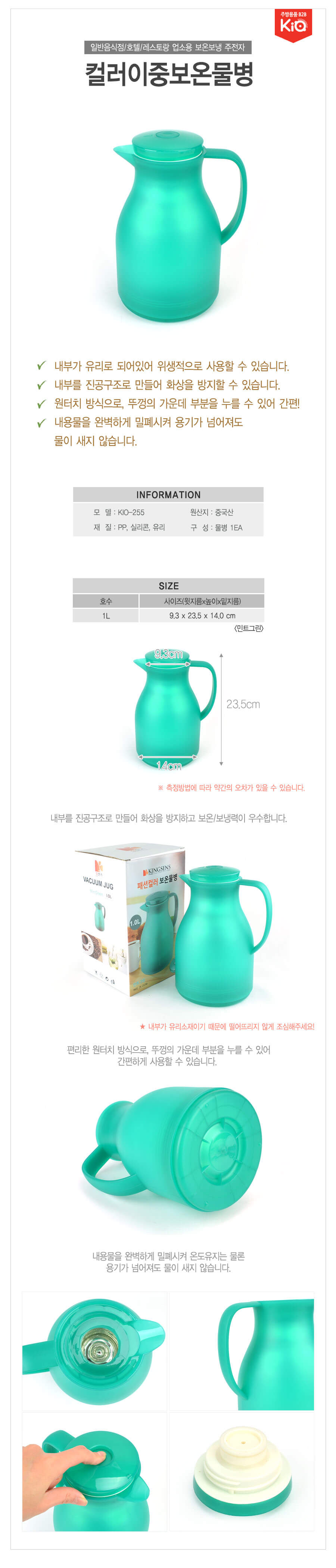 호텔 레스토랑 음식점 이중 보온 물병 초록 1리터