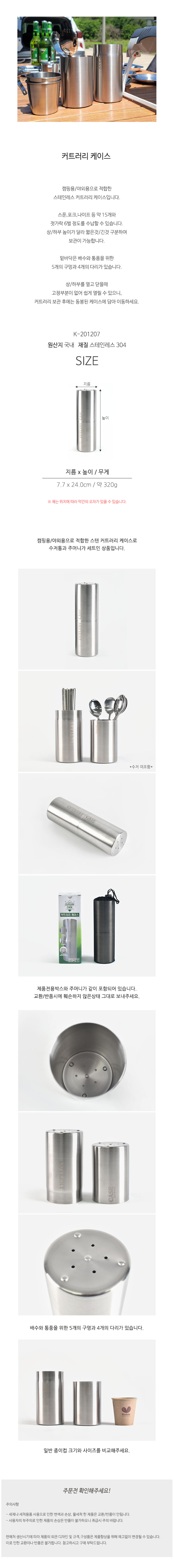 캠피용 야외용 스텐 커트러리 보관 스텐통 케이스