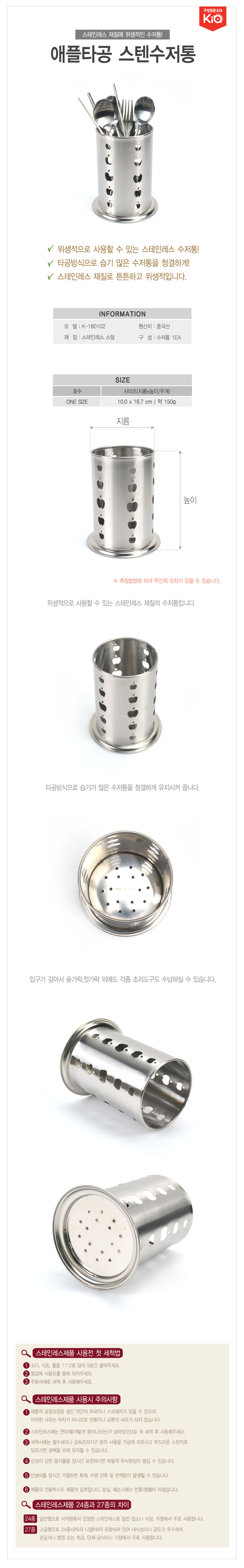 사과 모양 타공 디자인의 스텐 수저통 스텐수저통