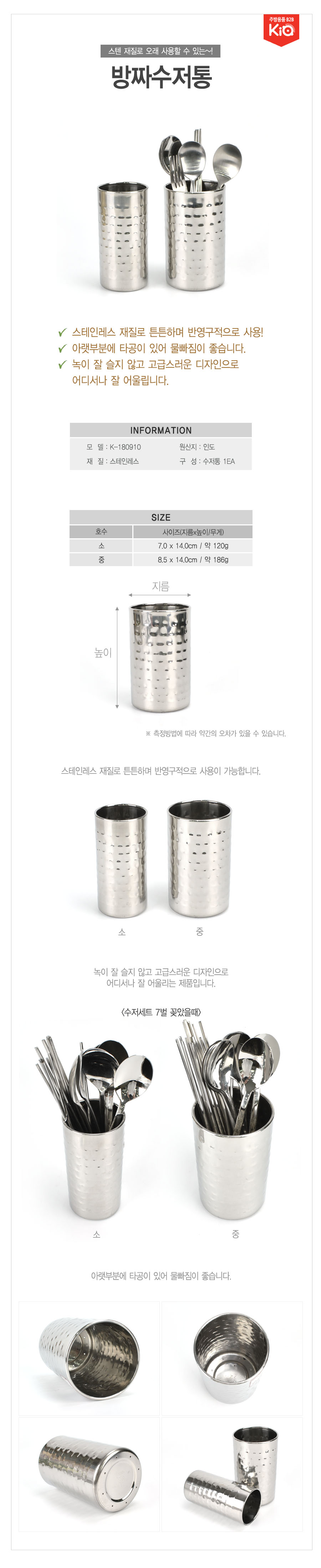 물빠짐 좋은 슬림 디자인 스텐 수저통 중