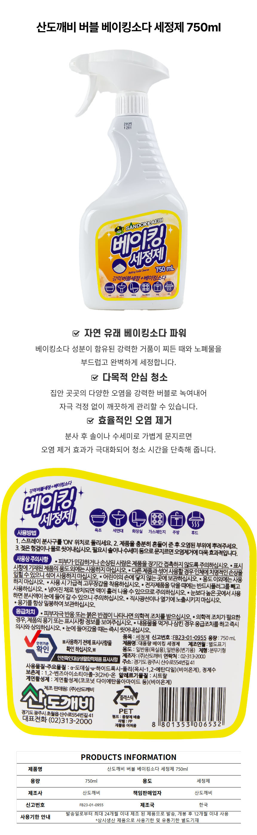 산도 깨비 버블 베이킹소다 세정제 750ml