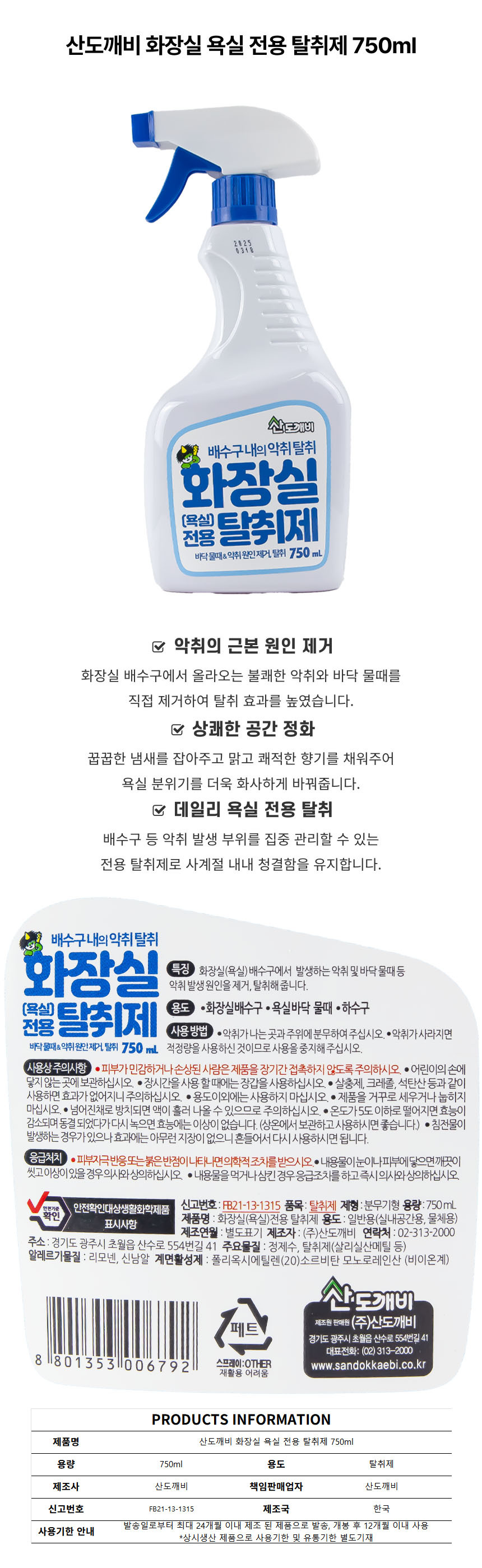 산도 깨비 화장실 욕실 전용 탈취제 750ml