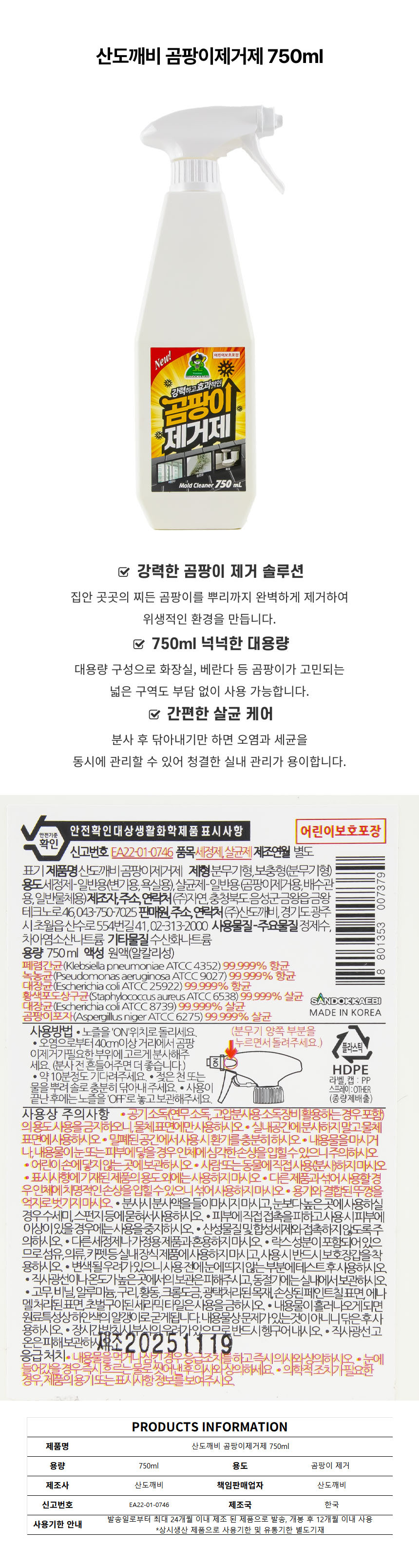 산도 깨비 곰팡이제거제 750ml