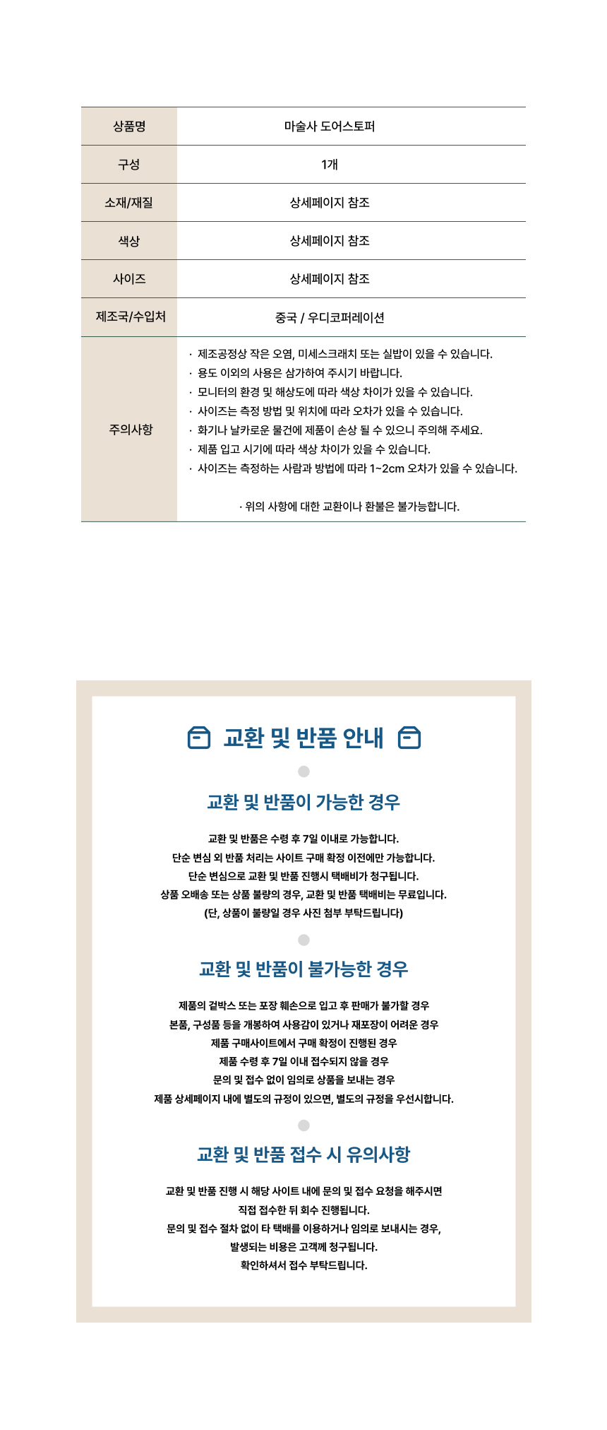 | 상품의 교환/반품/보증 조건 및 품질보증 기준 | |||