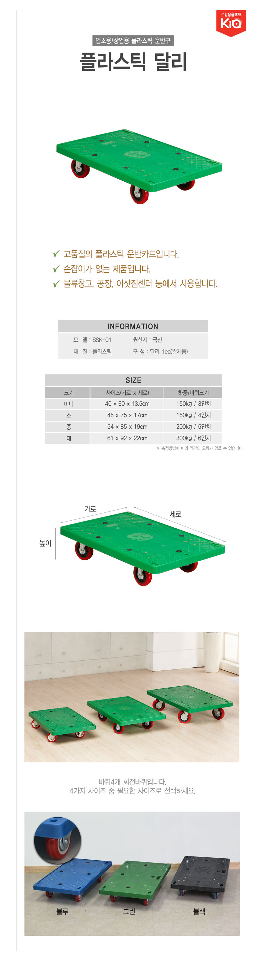 국산 플라스틱 달리 핸드 카트 이동식 운반 대차 소 검정