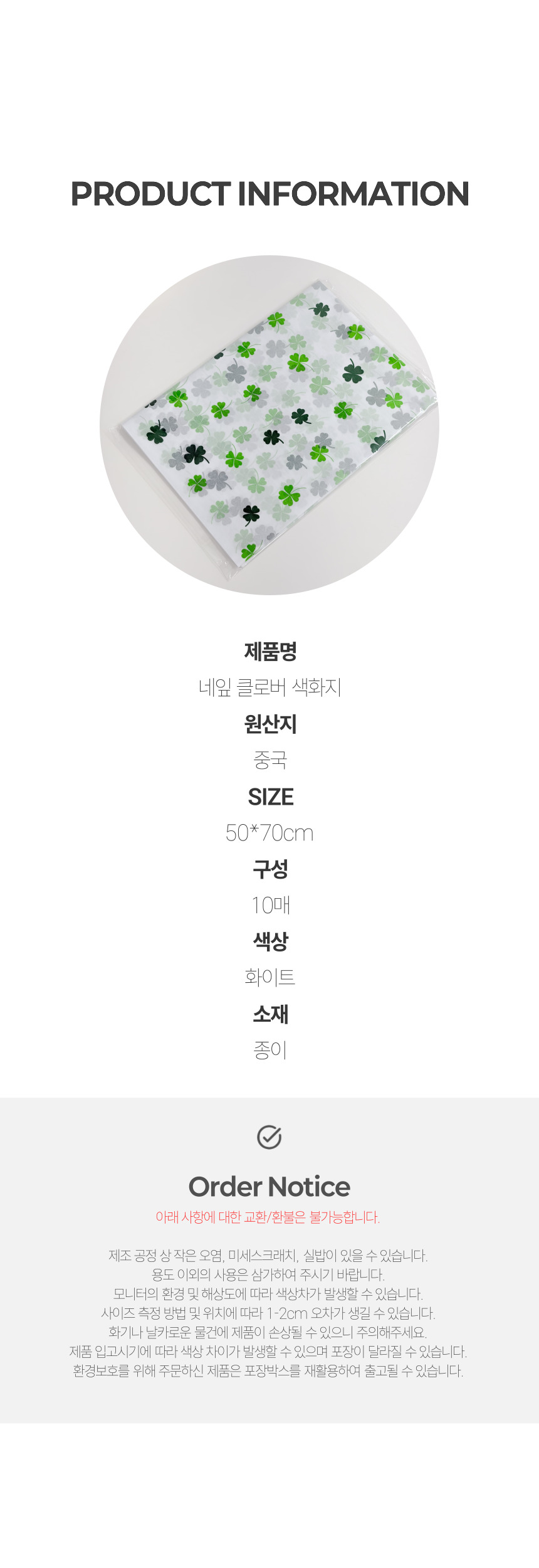 소품샵 선물 포장 꽃포장 네잎클로버 색화지 10매입