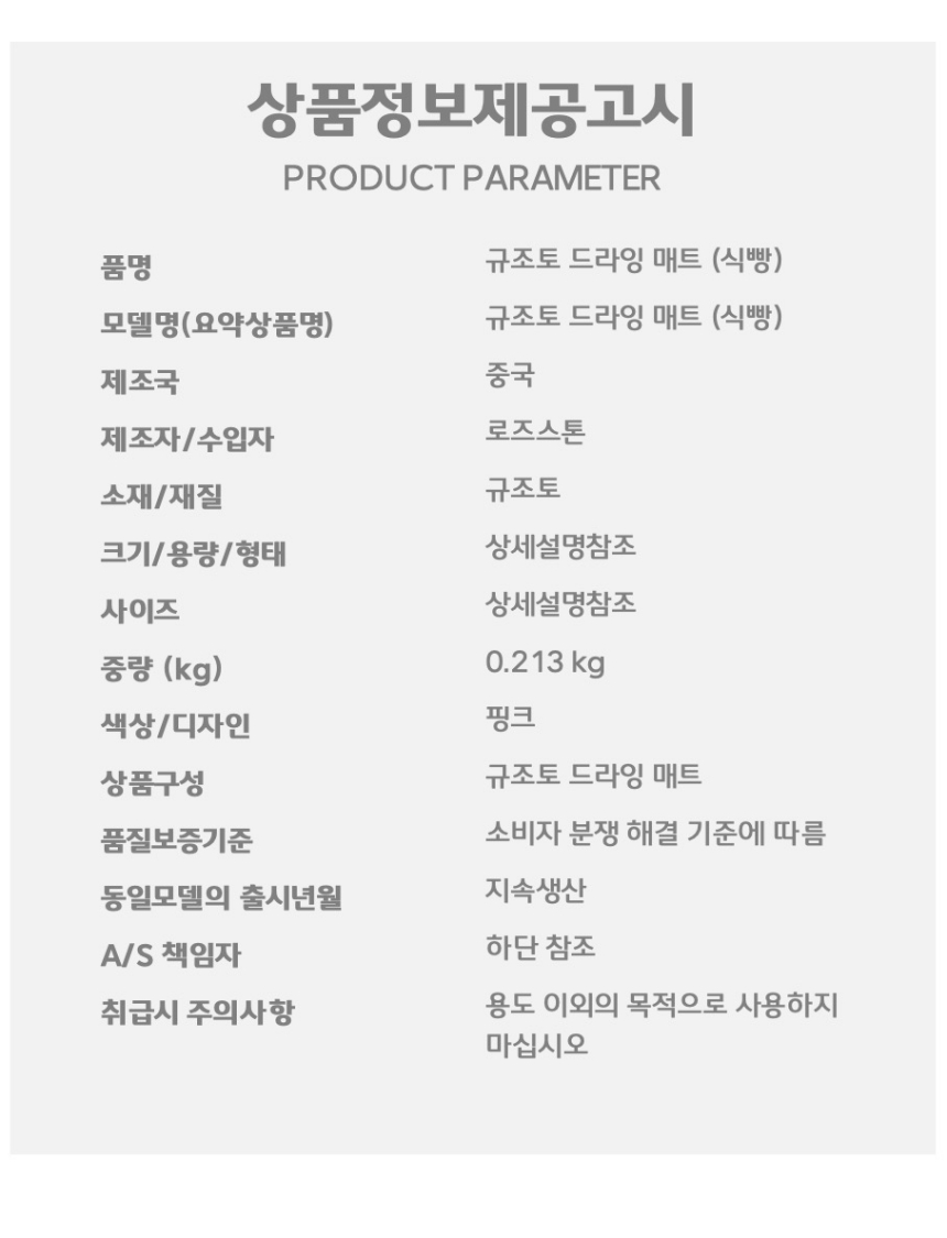 | 제조국 | 상세정보 별도표기 | 수입식품안전관리특별법에 따른 수입 신고 | 상세정보 별도표기 |