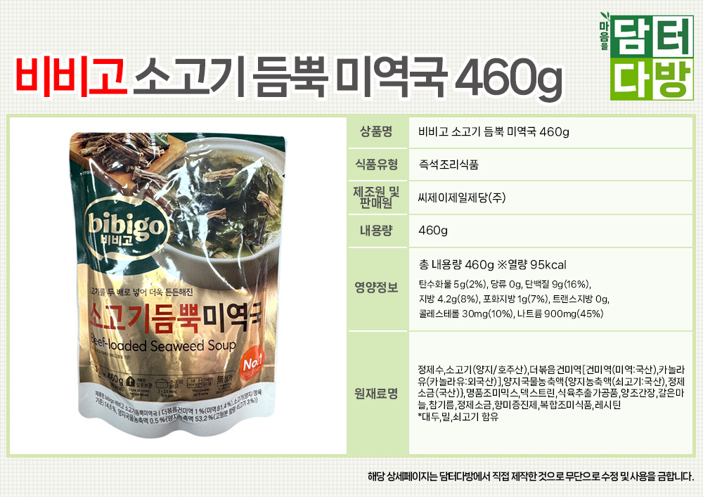 | 수입식품의 경우 수입식품안전관리특별법에 따른 수입신고를 필함 | 상세정보 별도표기 | 소비자 상담 관련 전화번호 | 상세정보 별도표기 |