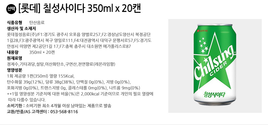 | 수입식품의 경우 수입식품안전관리특별법에 따른 수입신고를 필함 | 수입품:대상아님 | 소비자 상담 관련 전화번호 | 책임자/전화번호:053-568-8116 |