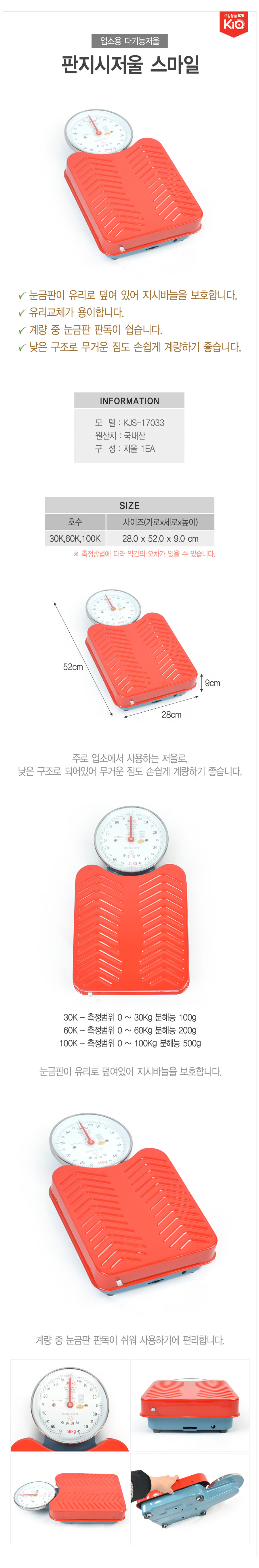 간편 눈금 판독 국산 주방 평면 저울 30K