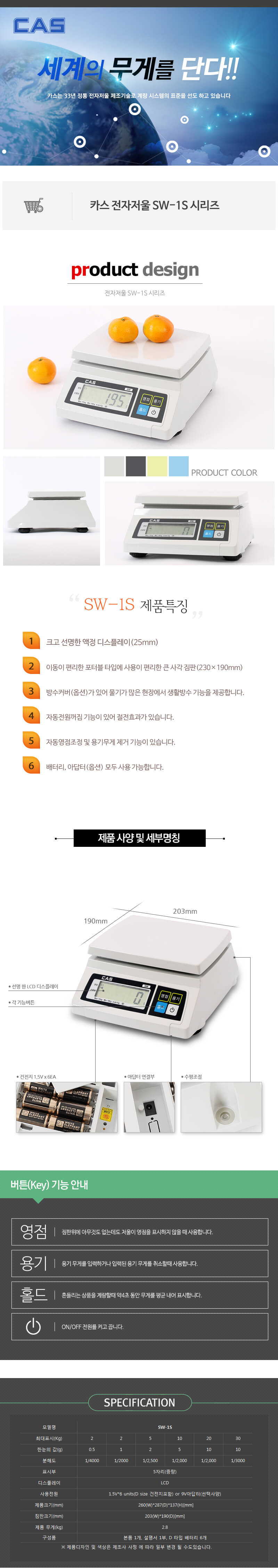 와이드 디스플레이 타입 디지털 전자저울 SW-20K