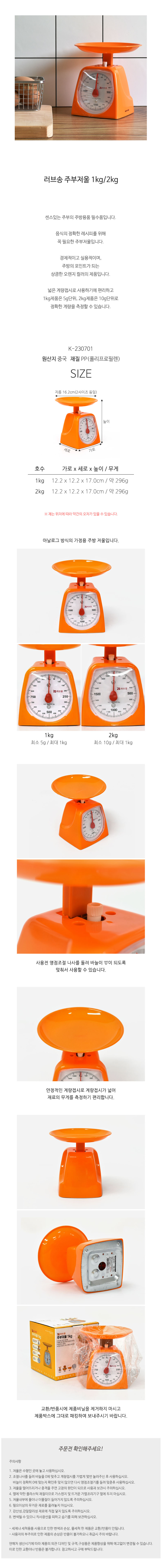 오렌지색 아날로그 계량 주방저울 1kg