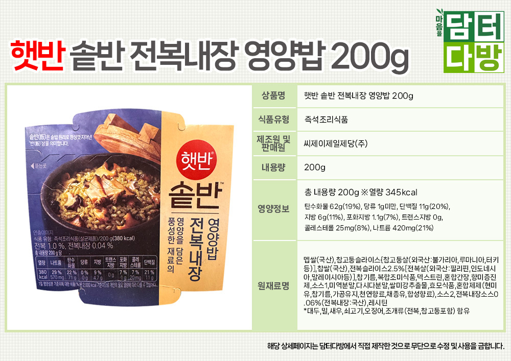| 수입식품의 경우 수입식품안전관리특별법에 따른 수입신고를 필함 | 상세정보 별도표기 | 소비자 상담 관련 전화번호 | 상세정보 별도표기 |