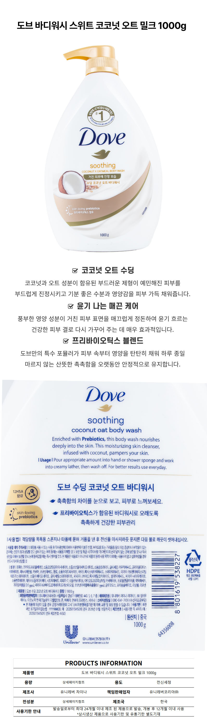 도브 바디워시 스위트 코코넛 밀크 1000g