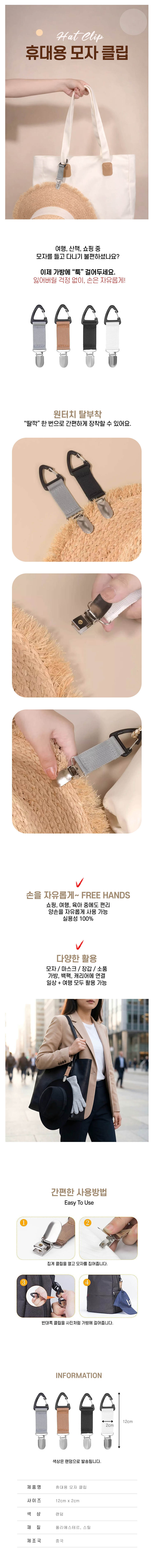 양손을 자유롭게 원터치 탈부착 휴대용 모자 클립 가방집게 모자분실방지 간편휴대클립