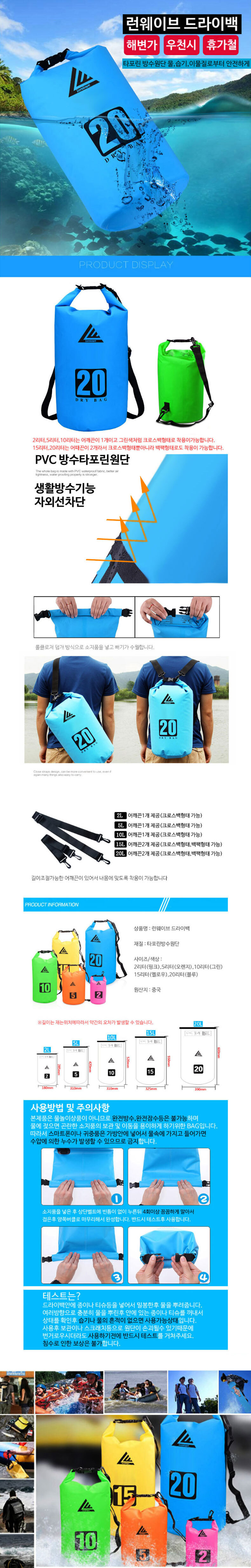 2L 5L 드라이백 수영장 워터파크 물놀이가방 비치백 다용도 방수가방 물놀이용품