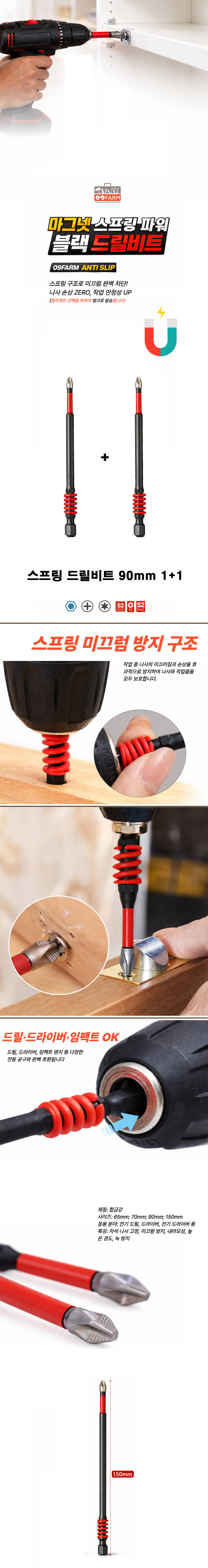십자팁 육각 스프링 S2강 90mm 블랙 드릴비트 1+1