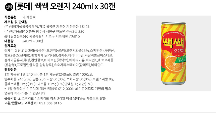 모델명롯데 쌕쌕 오렌지