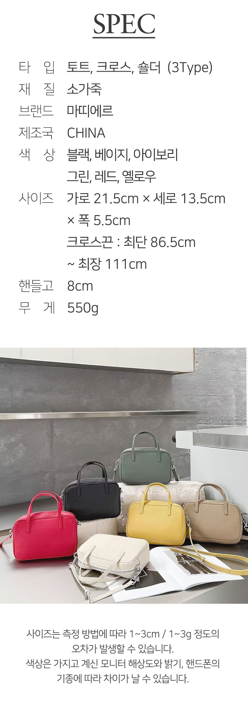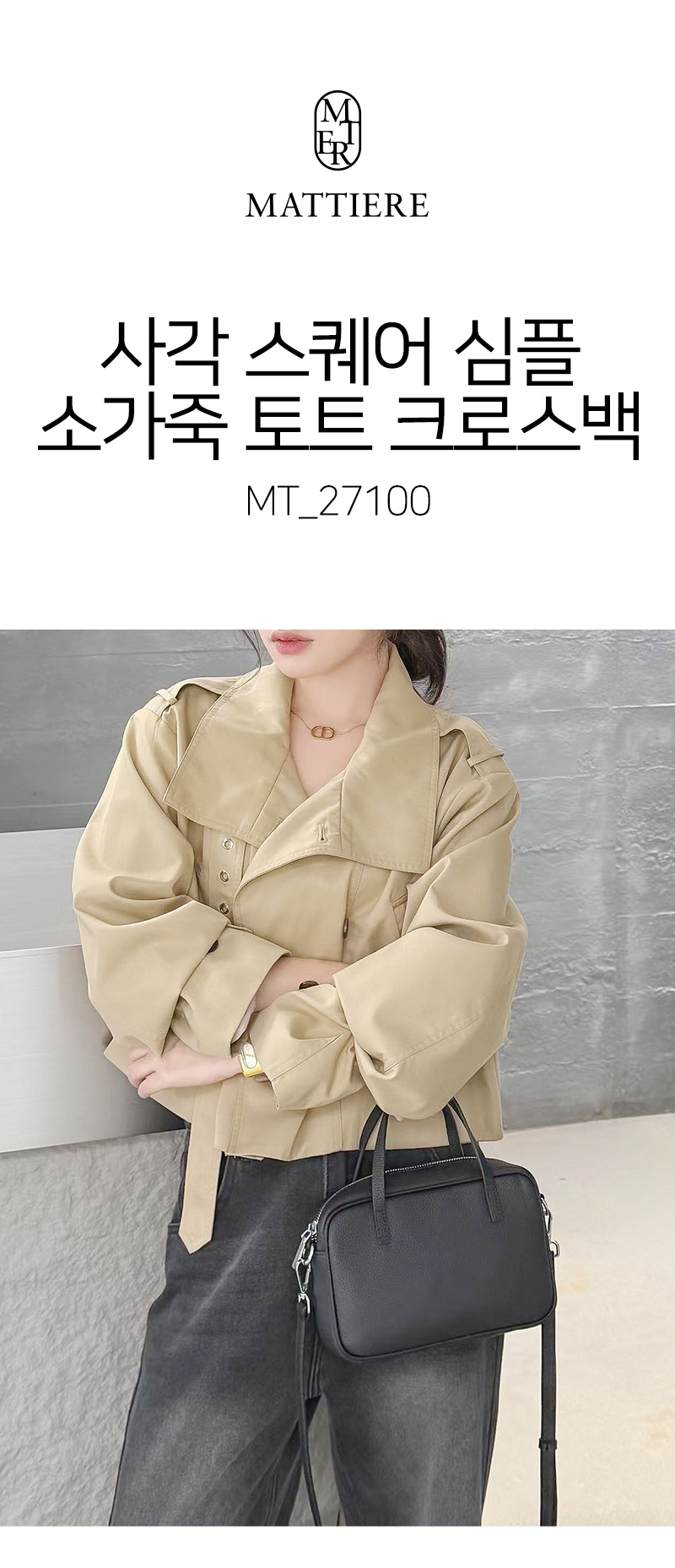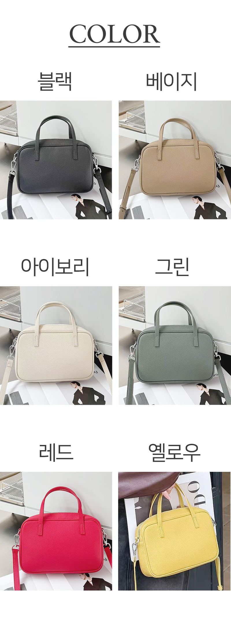 심플 사각 스퀘어 소가죽 토트백 데일리 숄더 여행 크로스백