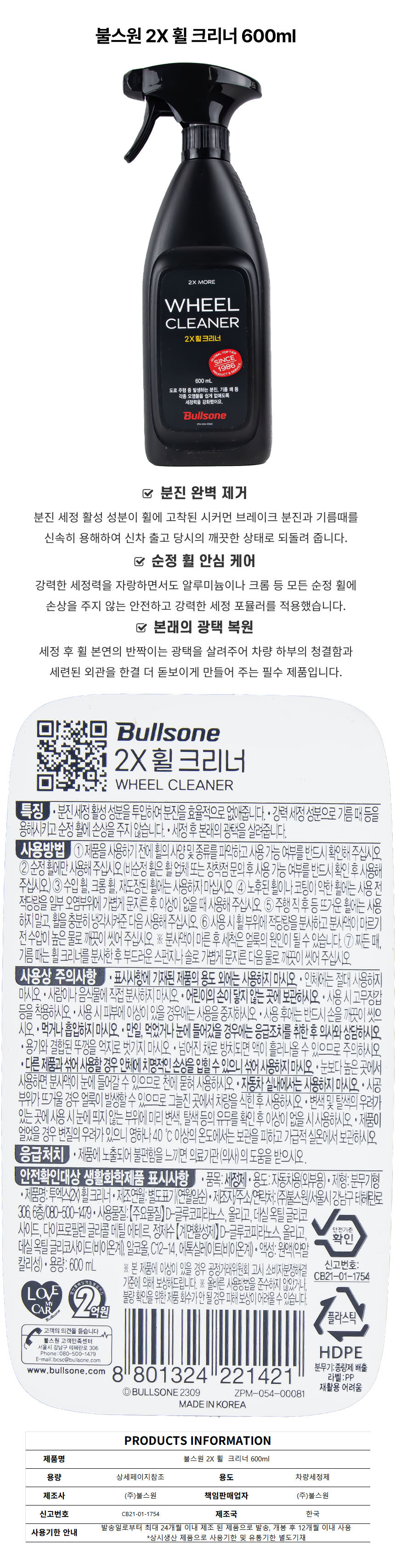 레저/자동차 > 자동차용품 > 세차/관리용품 > 휠세정제