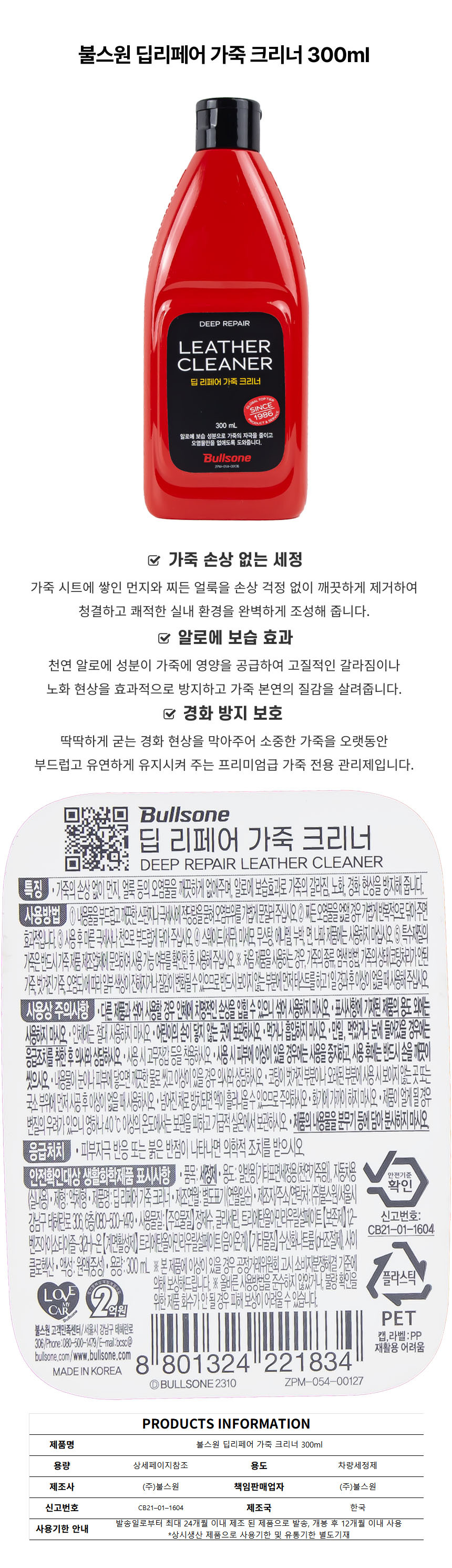 불스원 딥리페어 가죽 크리너 300ml