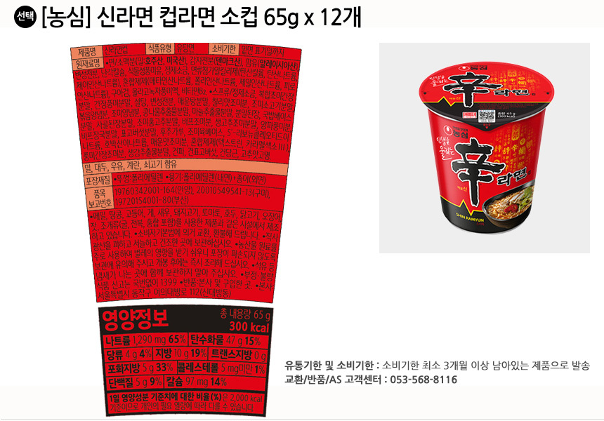 | 수입식품의 경우 수입식품안전관리특별법에 따른 수입신고를 필함 | 수입품:대상아님 | 소비자 상담 관련 전화번호 | 책임자/전화번호:상품 상세설명 참조 |