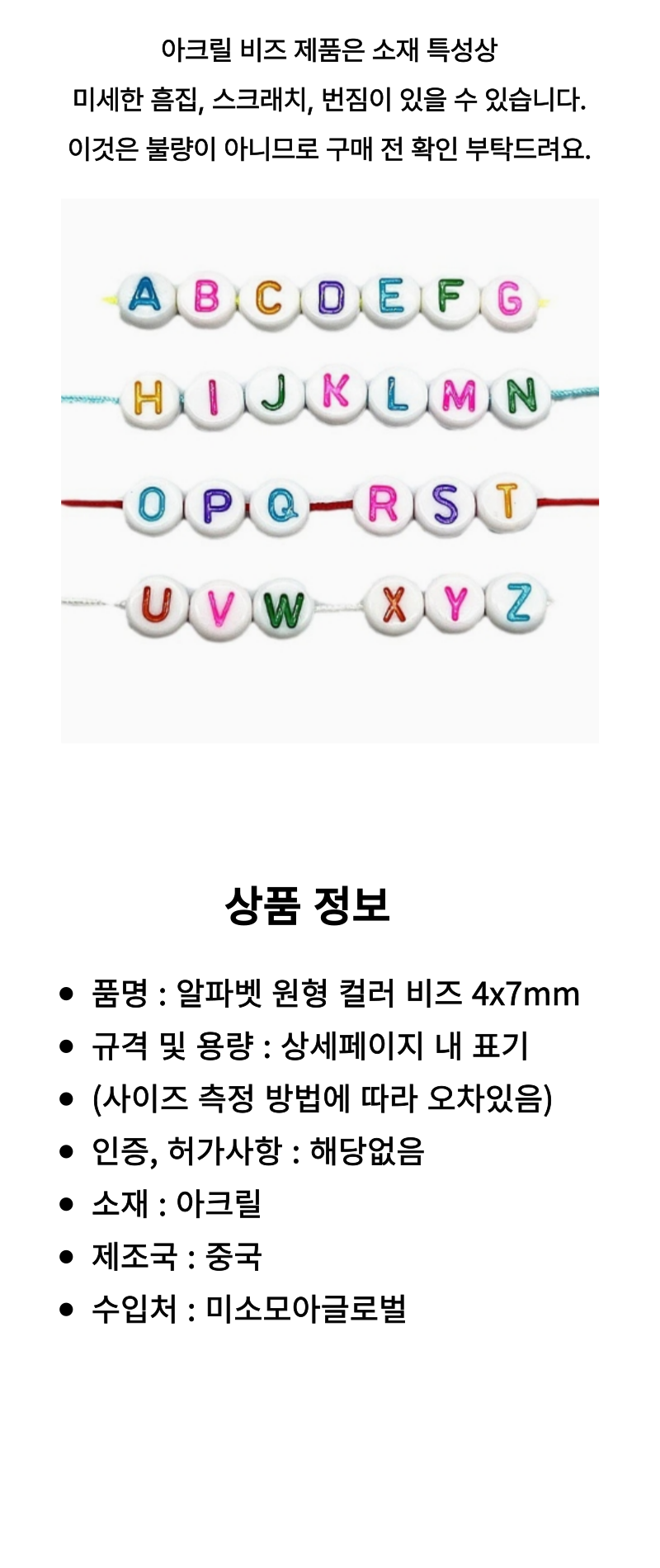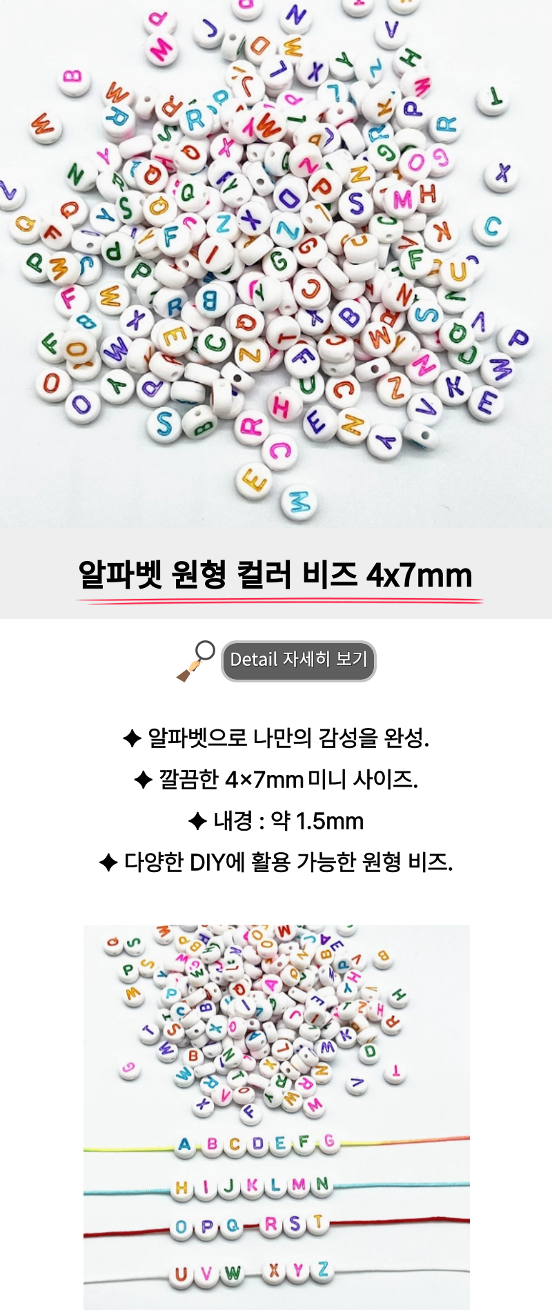 알파벳 원형 컬러 비즈 4x7mm 낱개 선택가능 이니셜 키링 M50651