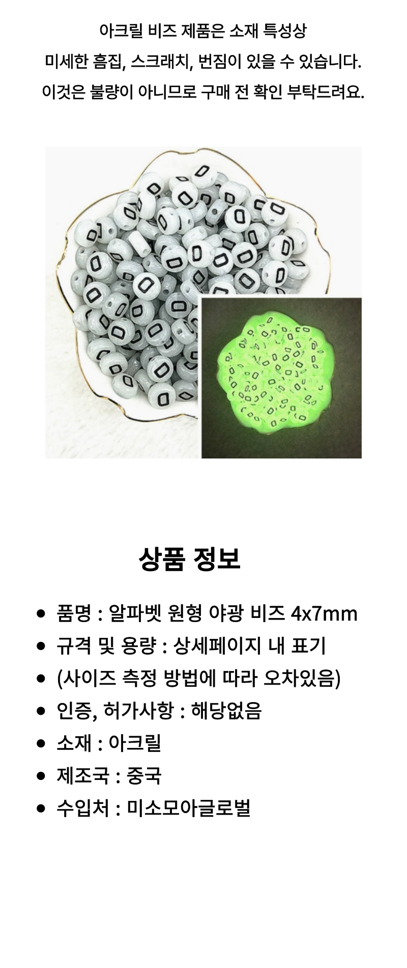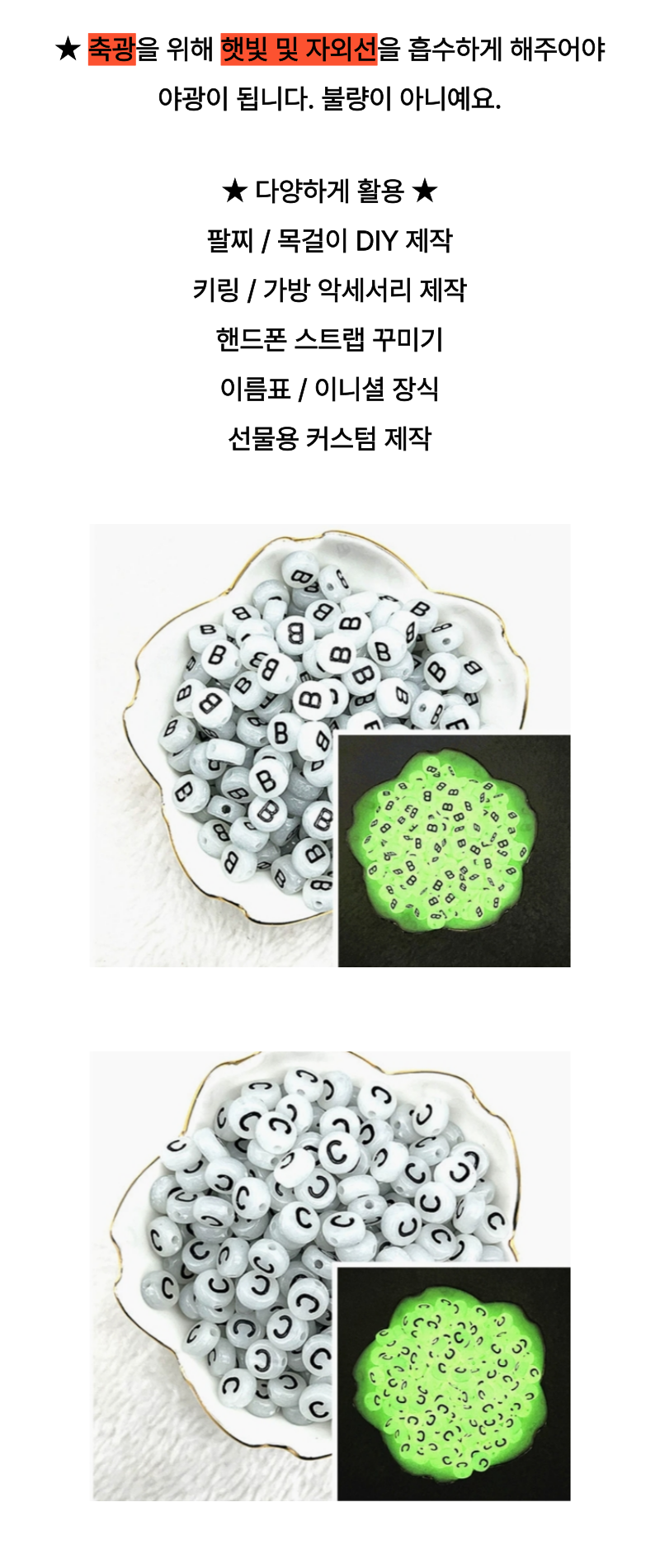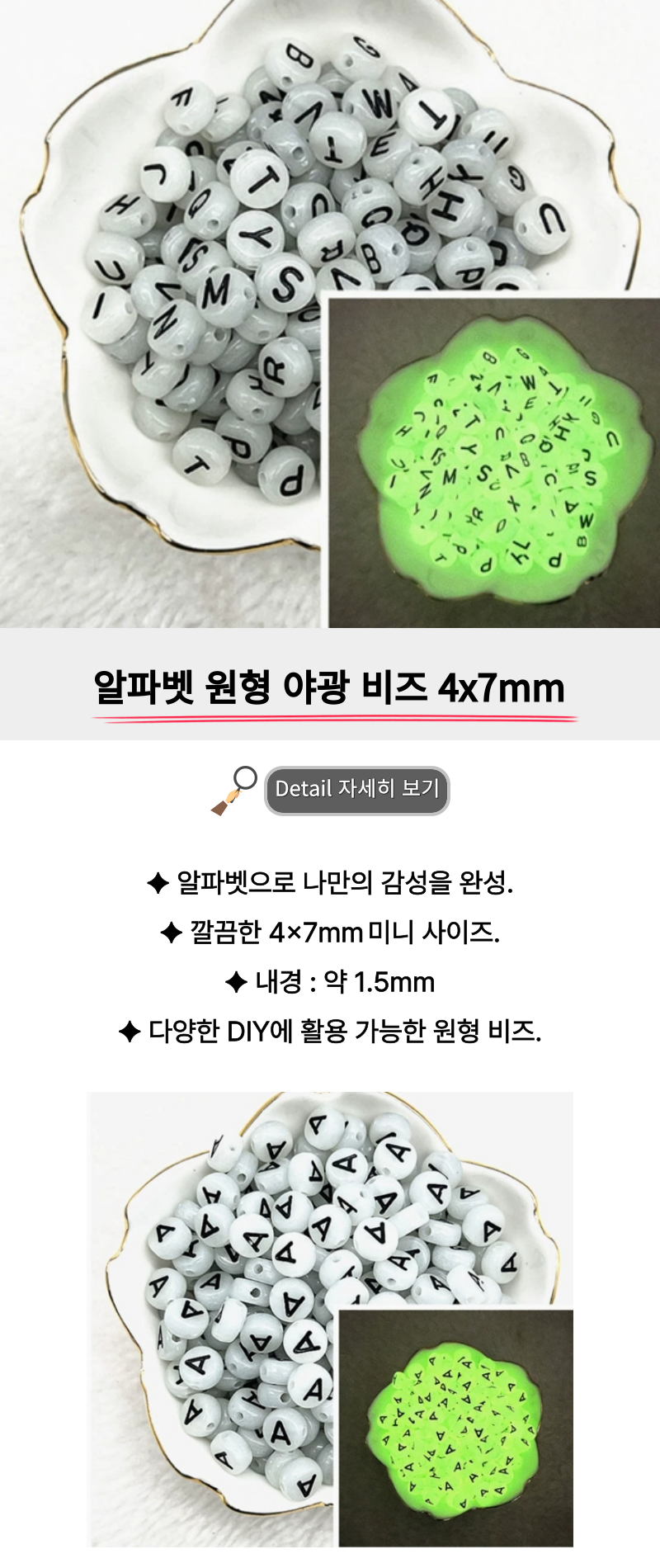 알파벳 원형 야광 비즈 4x7mm 낱개 선택가능 이니셜 키링 M50677