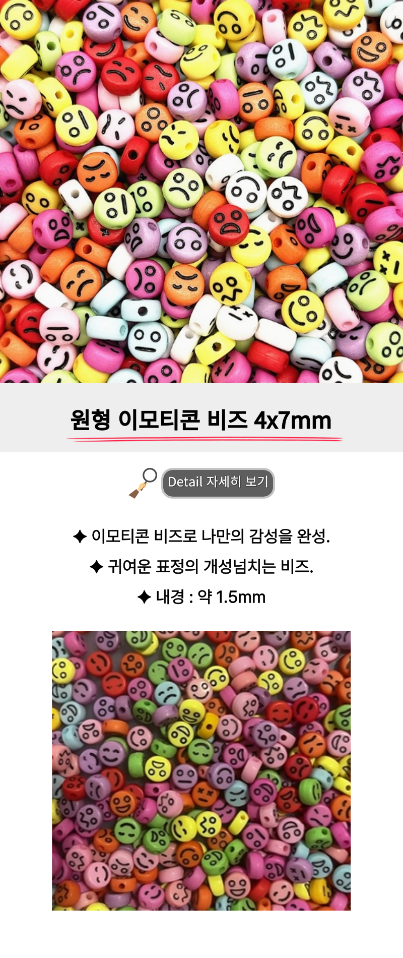 원형 이모니콘 비즈 4x7mm 키링 공예 재료 M50745