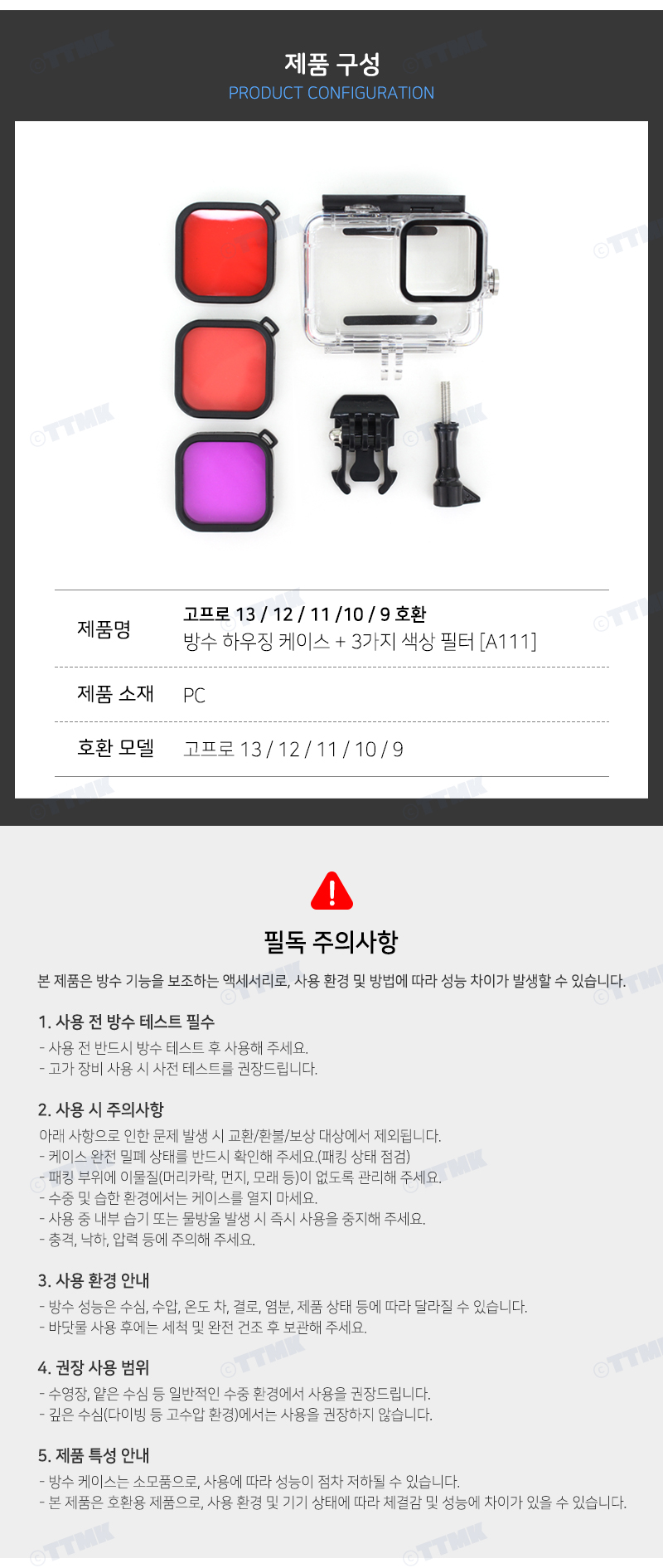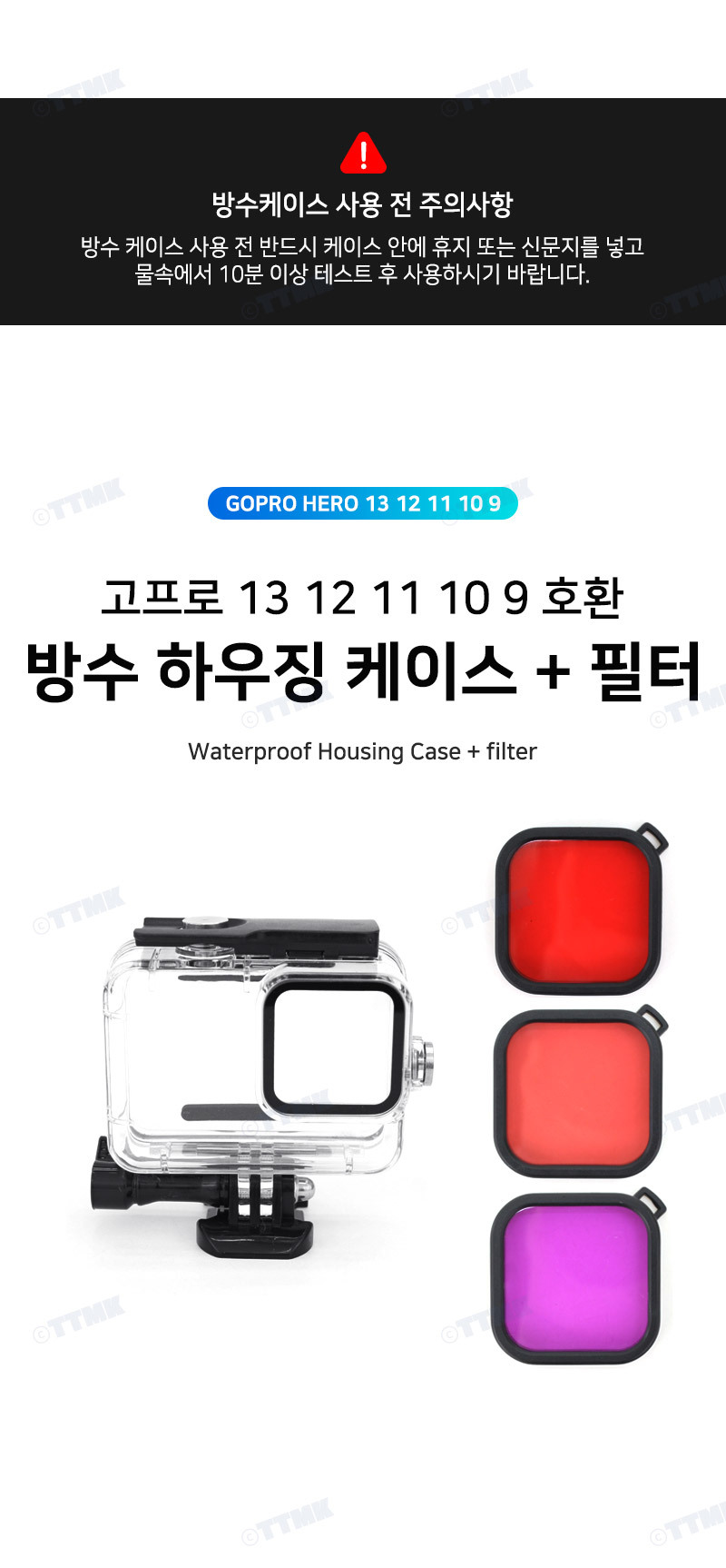 고프로 히어로 13 12 11 10 9 호환 방수 케이스 레드 필터