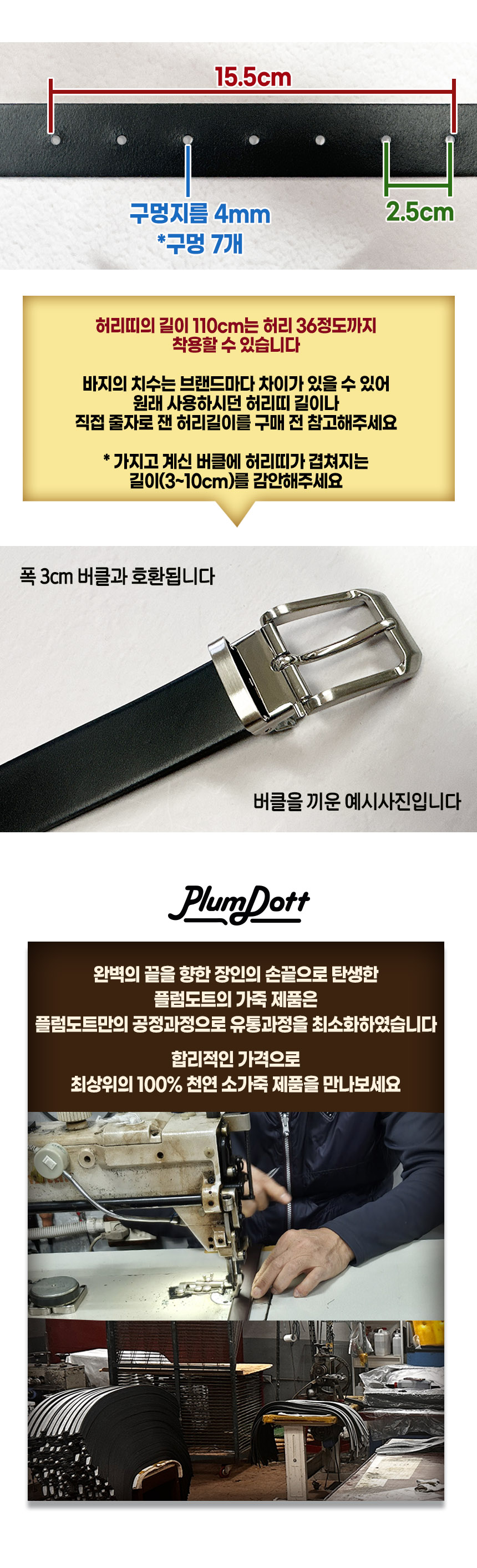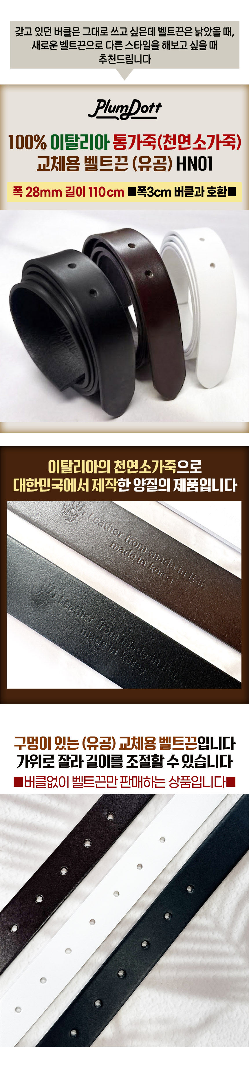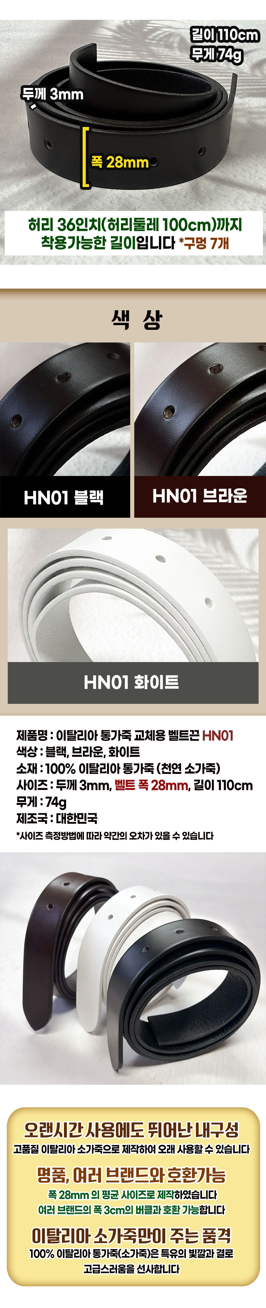 | 소재 | 이탈리아 통가죽 (천연소가죽) | 치수 | 길이 110cm, 실측벨트끈 폭 28mm |