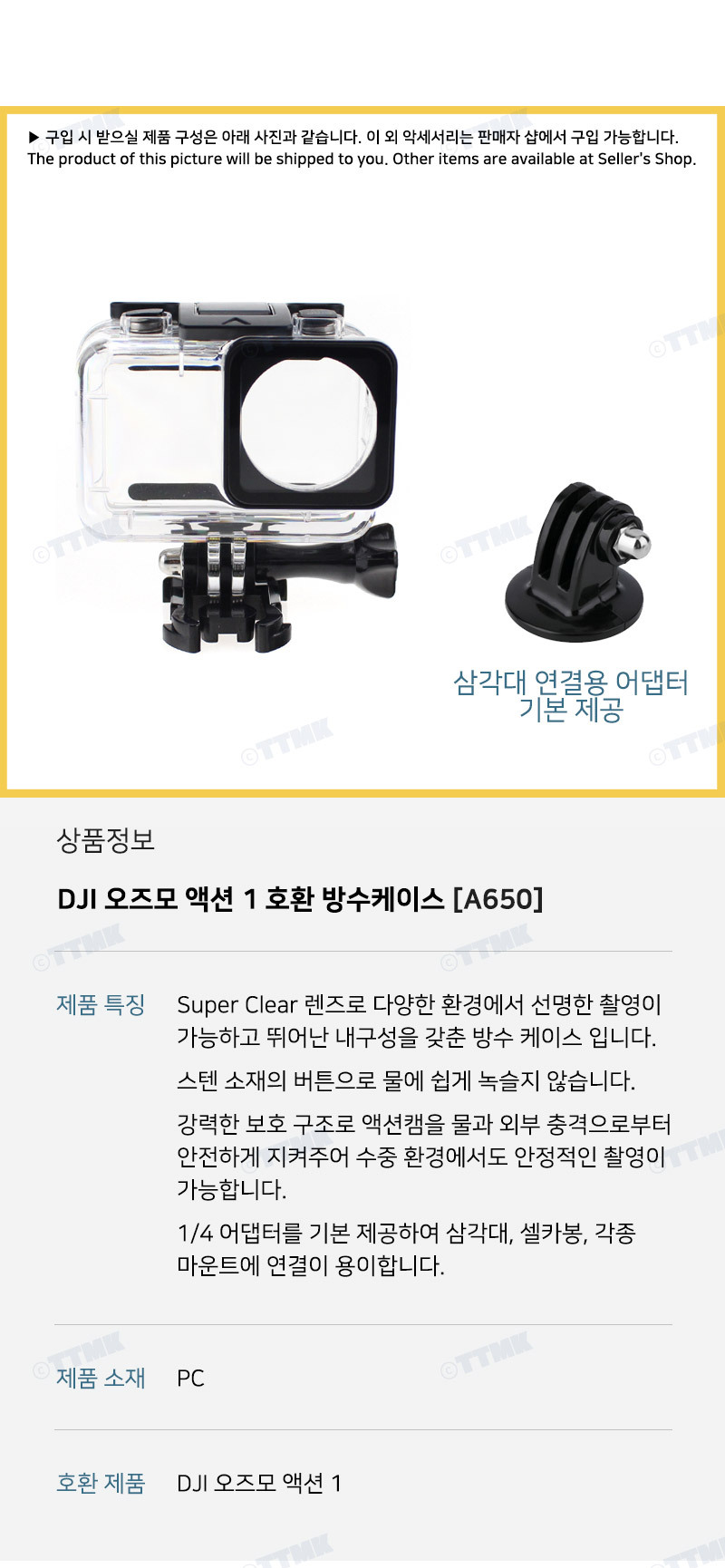 액션캠 오즈모 액션 1 호환 하우징 방수 케이스 방수팩