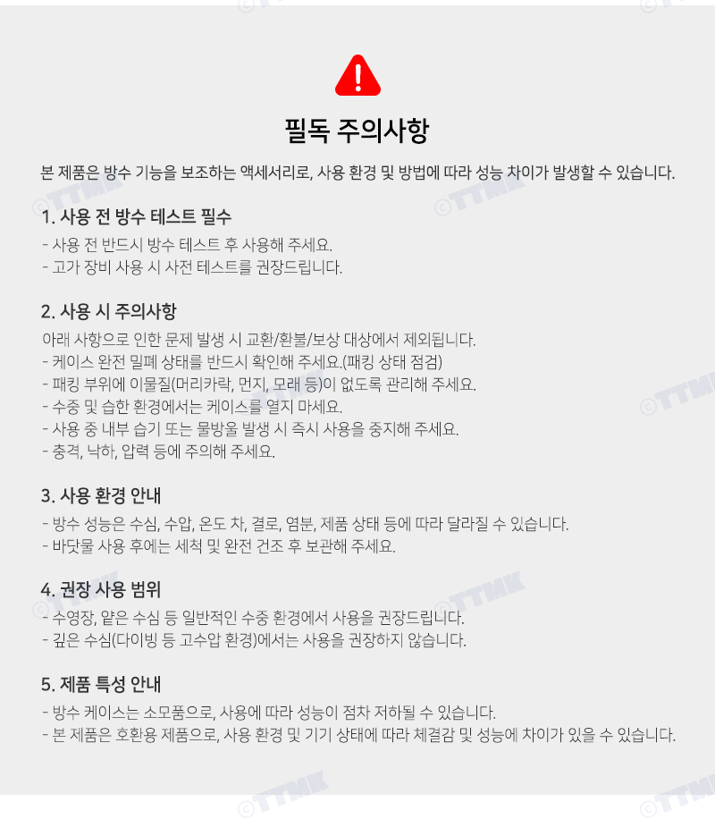 5. 반품지 주소는 1:1문의게시판으로 문의해 주시기 바랍니다.