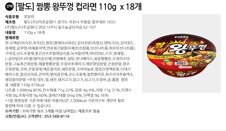 | 제품군 | 가공식품 | 제품명 | 제품명:상품 상세설명 참조 |