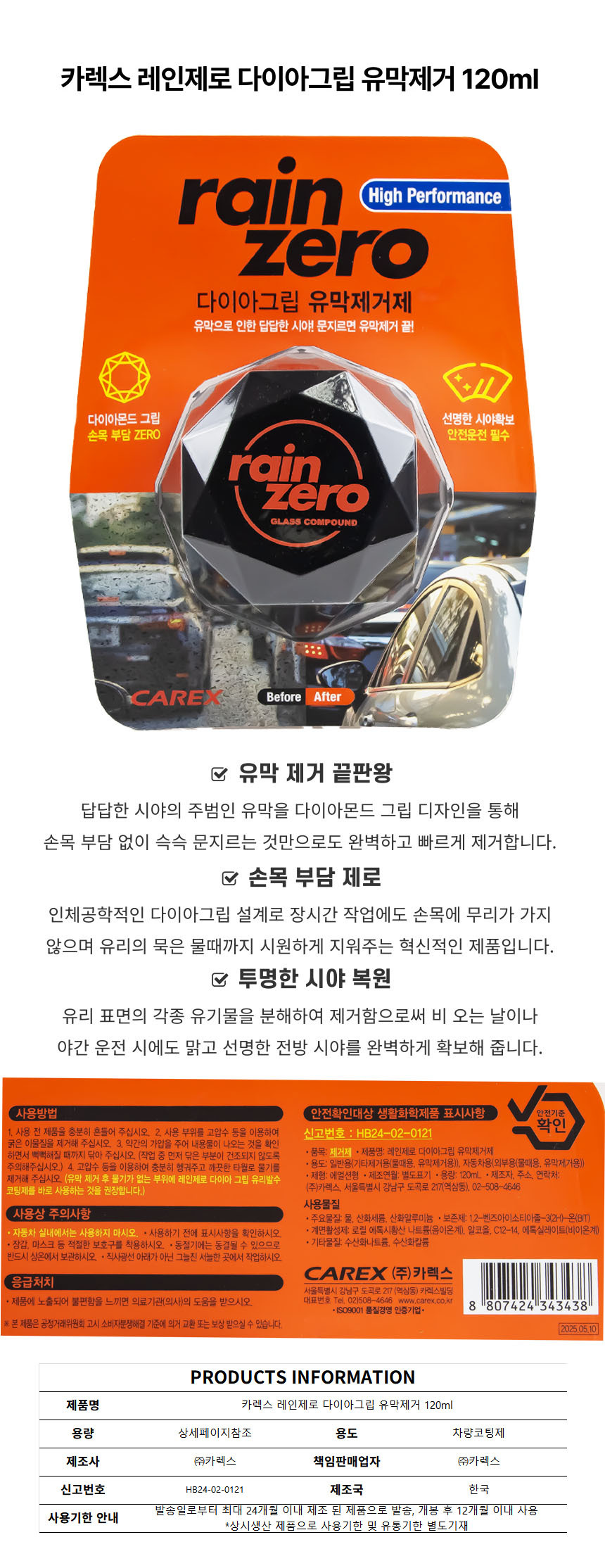 카렉스 레인제로 다이아그립 유막제거 120ml