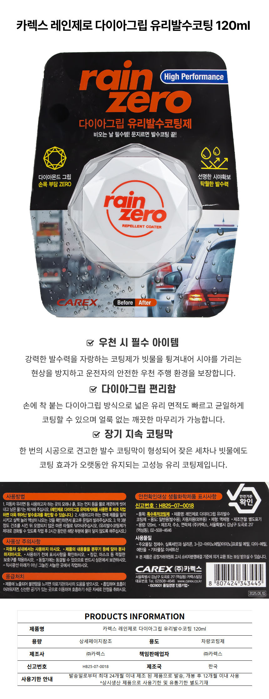 카렉스 레인제로 다이아그립 유리발수코팅 120ml