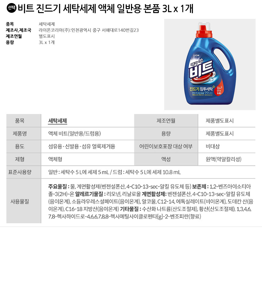 생활/건강 > 세제/방향/살충 > 세탁세제 > 액상세제