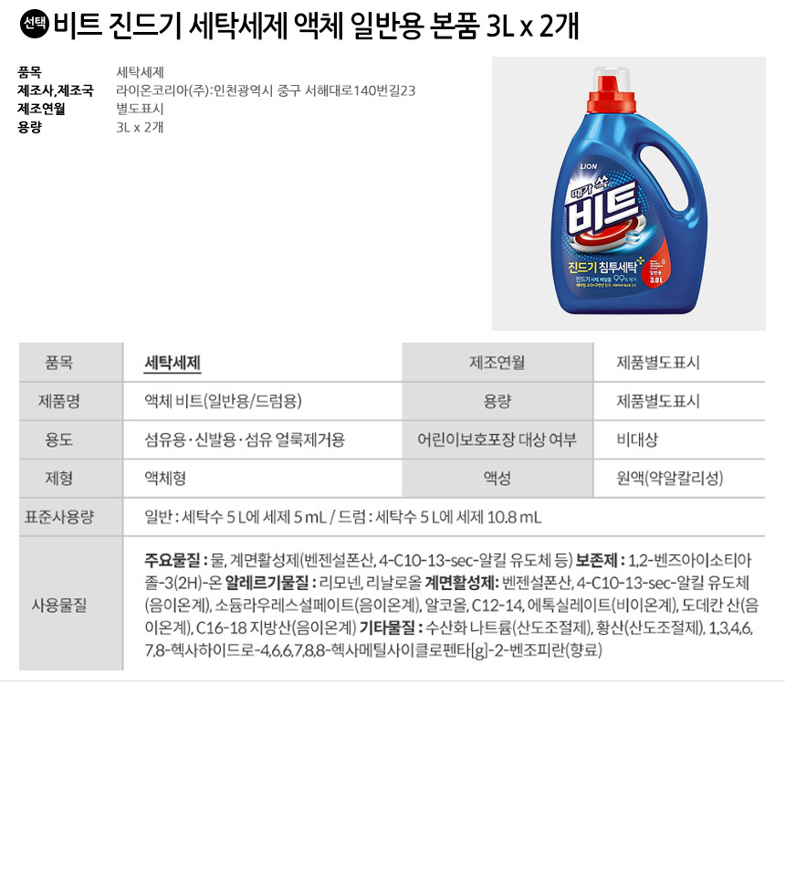 모델명비트 진드기 세탁세제 액체 일반용