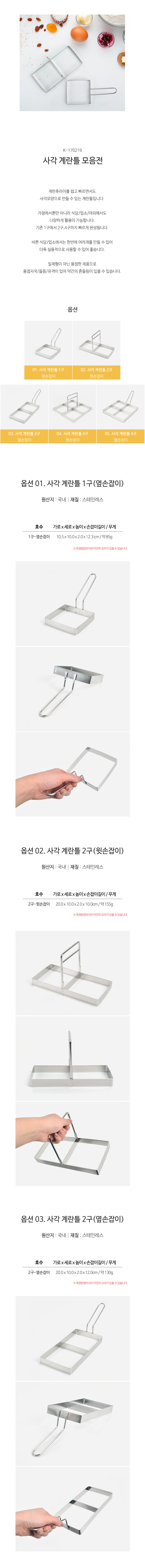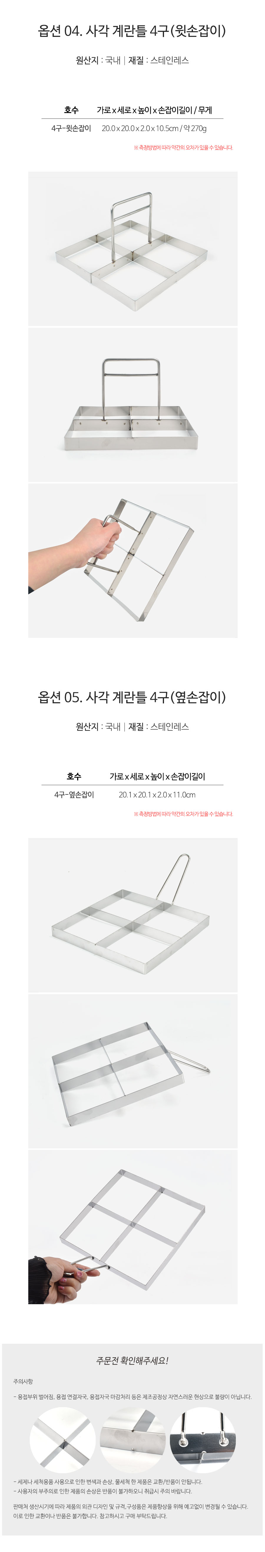 브런치 토스트 사각모양 계란틀 4종 2구(옆손잡이)