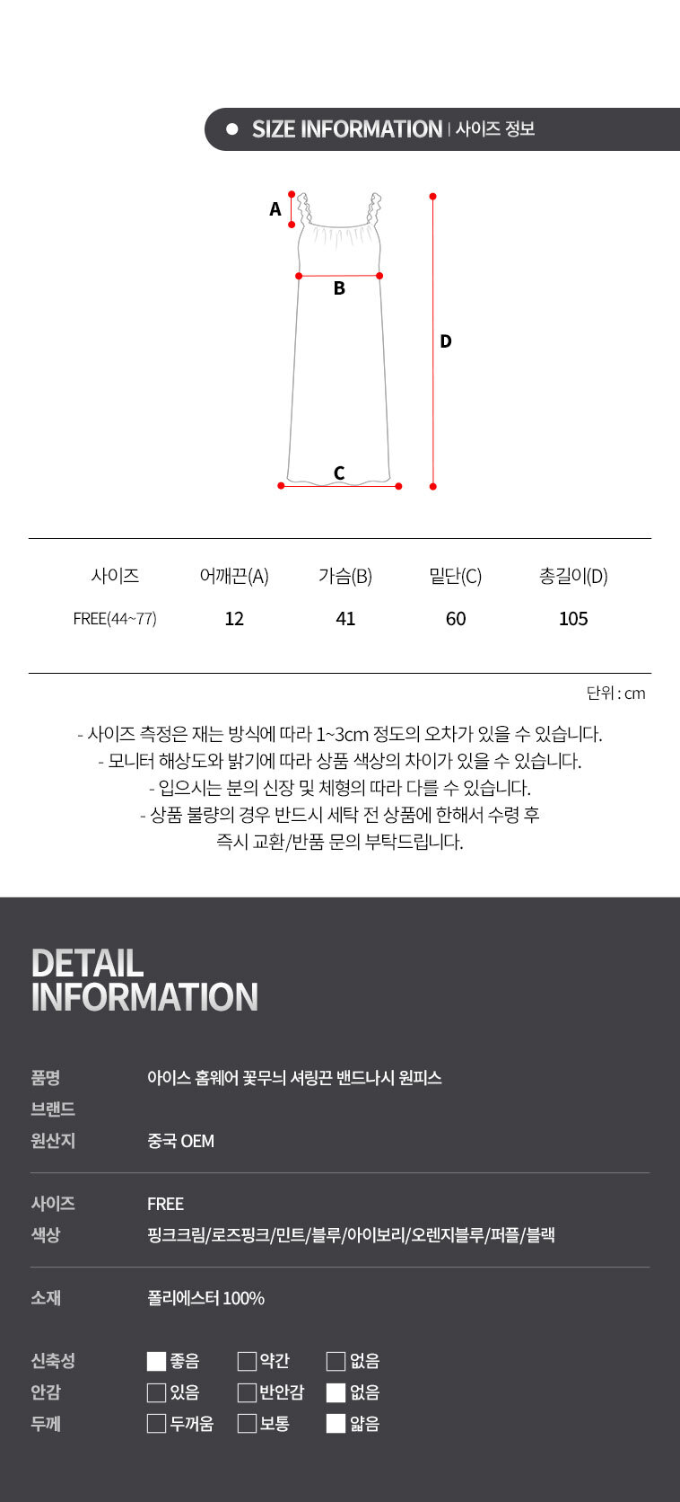 | 색상 | 상품 상세정보에 별도 표기 | 치수 | 상품 상세정보에 별도 표기 |