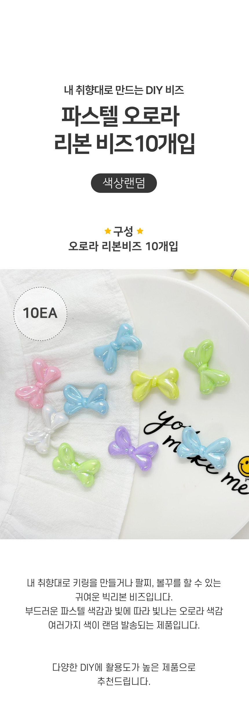 파스텔 오로라 리본 비즈 키링 팔찌 DIY 10개입