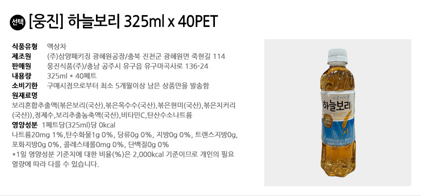 웅진 하늘보리 325ml x 40PET