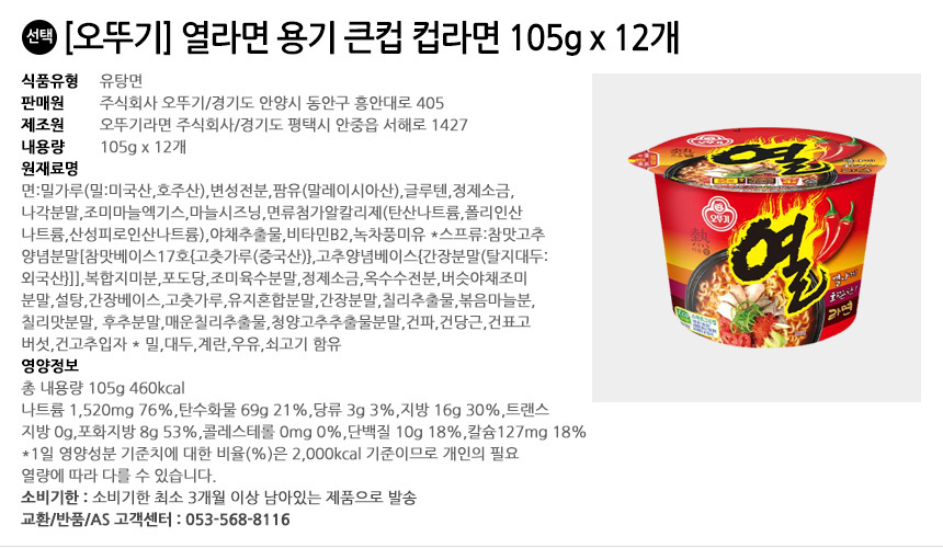 | 영양성분 | 영양성분:상품 상세설명 참조 | 유전자변형식품에 해당하는 경우의 표시 | 유전자변형식품여부:대상아님 |