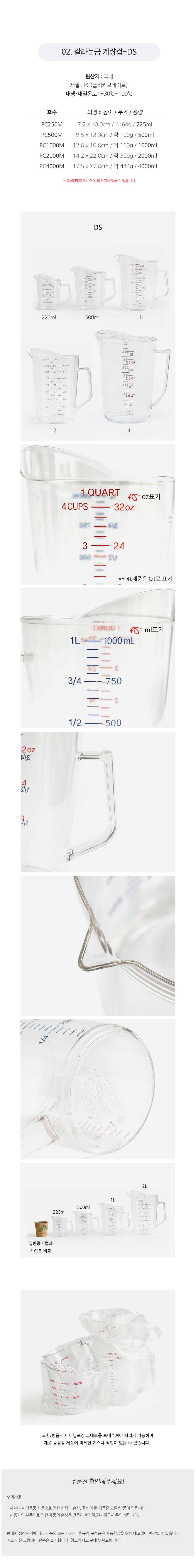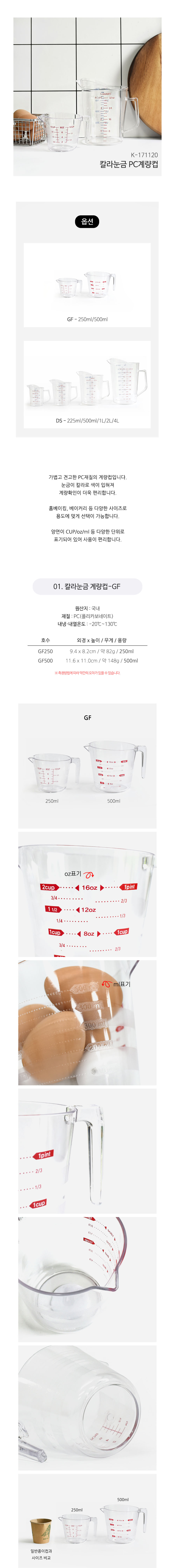 투명 PC 계량컵 컬러 눈금 제빵 제과 조리용 GF-500